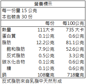 成分-殺菌乳脂(來自牛乳)、鹽